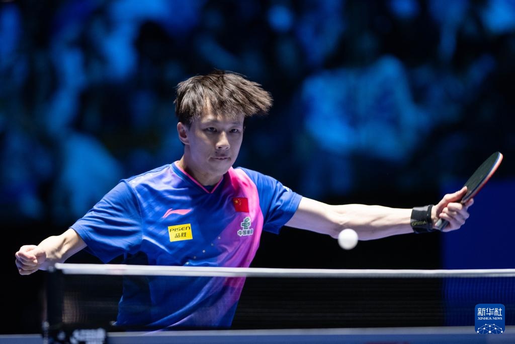 4月19日,樊振东在比赛中回球。新华社记者 张金加 摄
