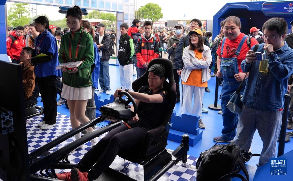 当日,F1中国大奖赛在上海国际赛车场继续进行,众多观众前来观赛并在车迷活动区参观体验。