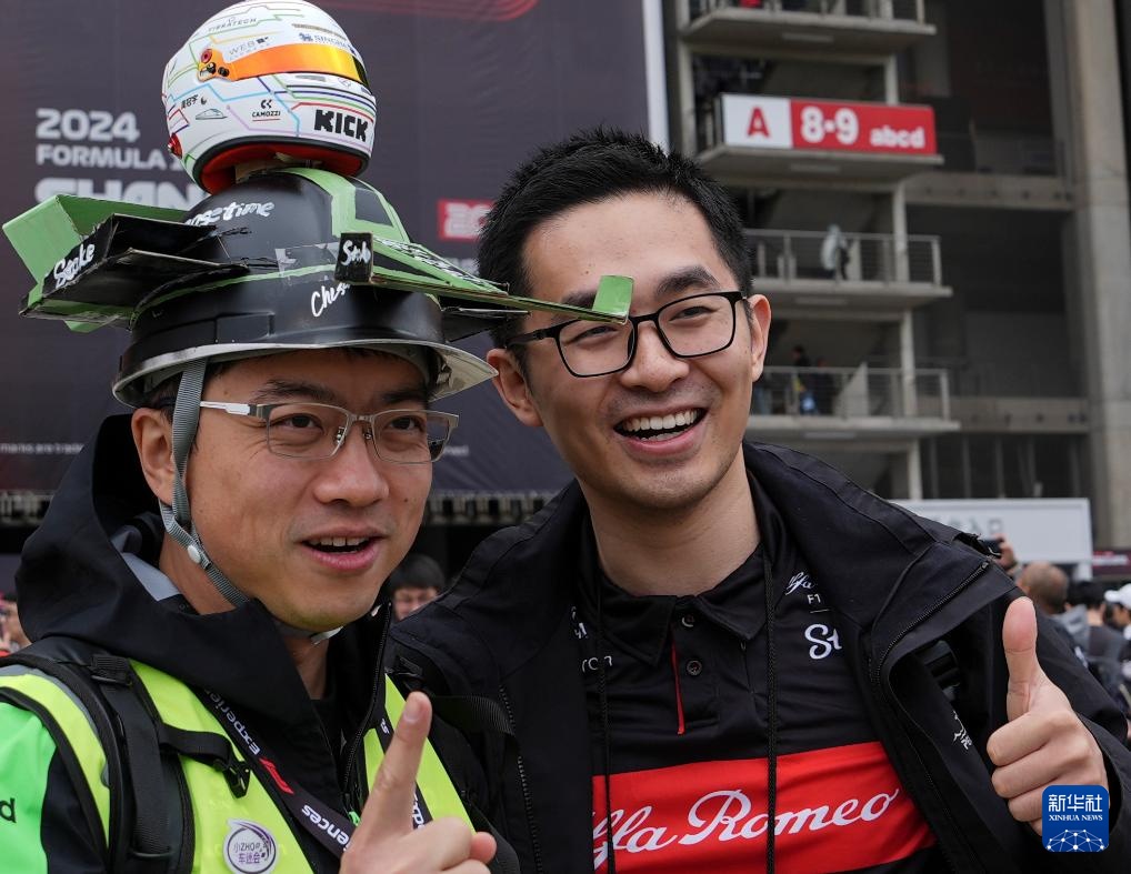 4月20日,车迷在上海国际赛车场留影。新华社记者 贺长山 摄
