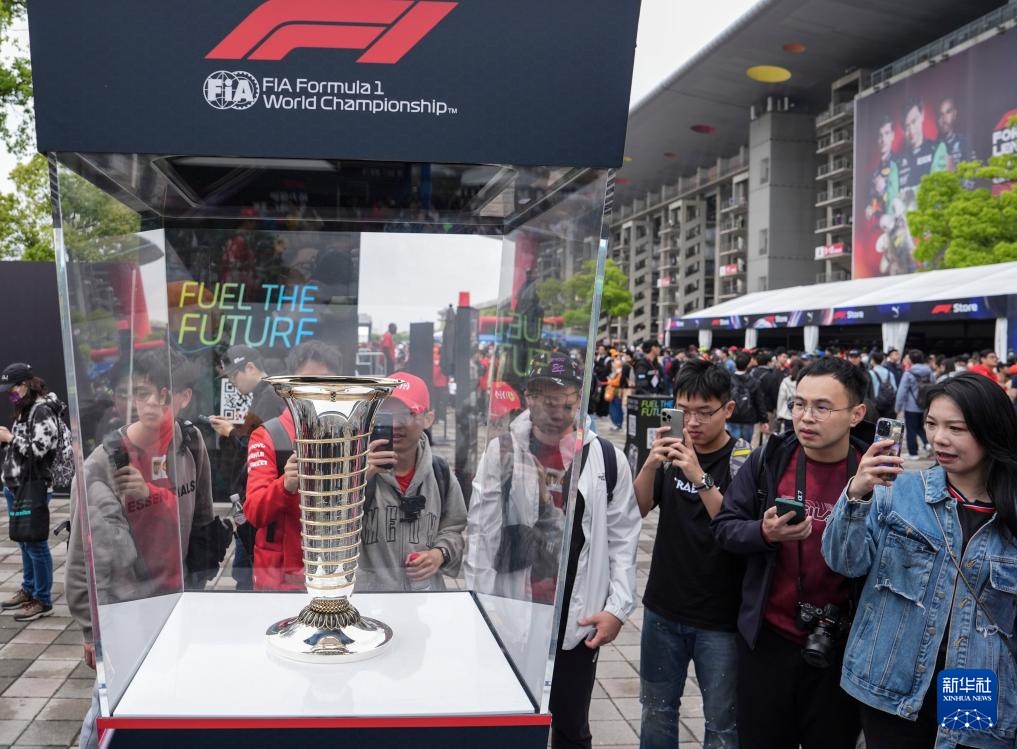 4月20日,观众在上海国际赛车场拍摄F1冠军奖杯。新华社记者 贺长山 摄