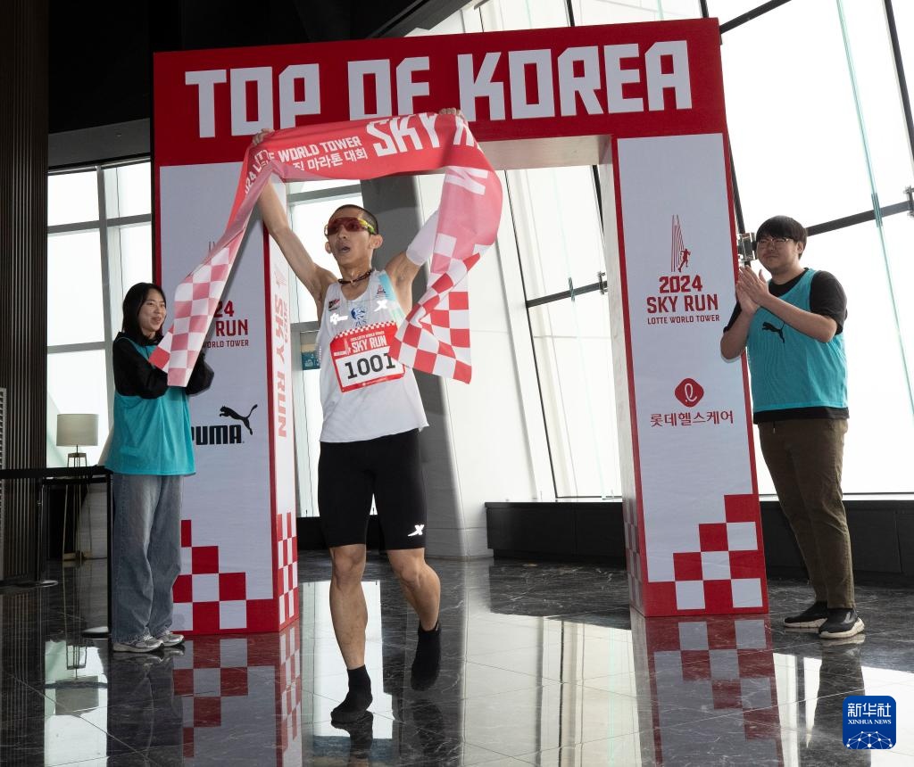 当日,2024乐天世界塔垂直马拉松比赛在韩国首尔举行。2200多名参赛选手需要从乐天世界塔1层攀登至123层,共计2917级台阶。