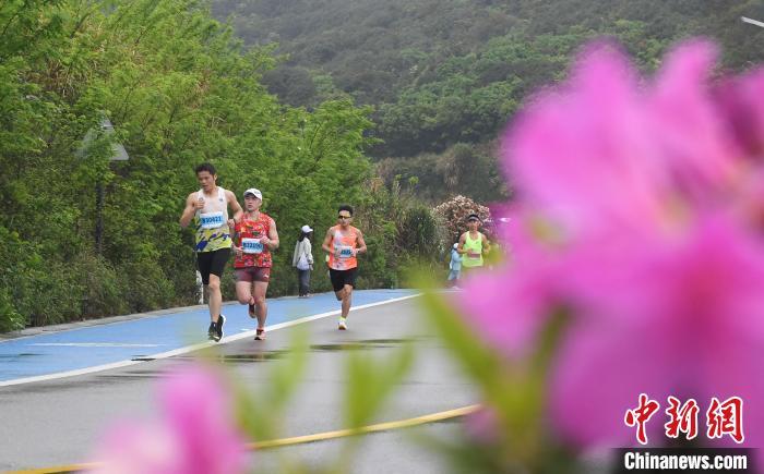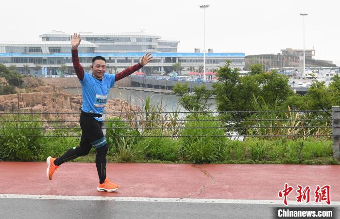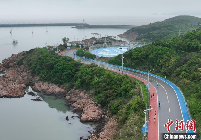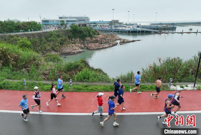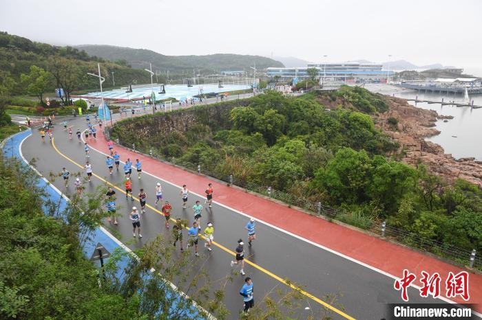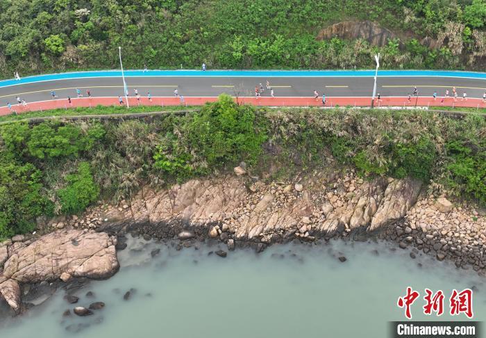 图为:参赛选手从环境优美的滨海跑道跑过。中新网记者 王刚 摄