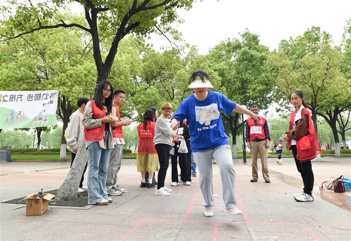 来自硚口的邹女士和爱人一起参加了彩虹跑活动。邹女士陪自己的母亲,邹女士的爱人则陪另一位失聪阿姨。她告诉极目新闻记者:“今天参加彩虹跑,我和妈妈在风景如画的江滩一起跳房子、夹弹珠,我发现她是发自内心的开心,脸上一直充满笑容。”