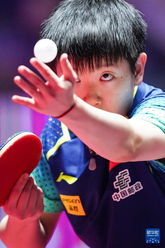 4月21日,孙颖莎在比赛中发球。新华社记者 王申 摄