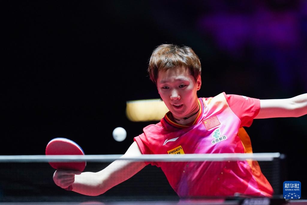 4月21日,孙颖莎在比赛中回球。新华社记者 王申 摄