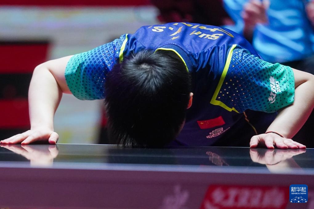 4月21日,孙颖莎庆祝胜利。新华社记者 王申 摄