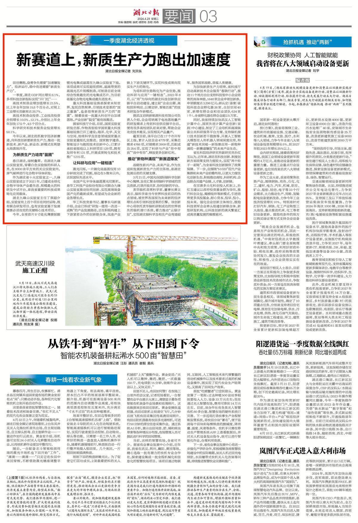 一季度,湖北GDP同比增长6.1%,多项科技创新指标实现“开门红”——