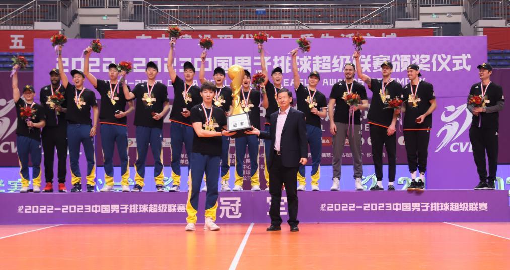 2023年1月5日,在河北保定进行的2022-2023中国男子排球超级联赛决赛第二场比赛中,北京汽车男排以3:0战胜上海光明男排,以2:0的总比分夺得本赛季联赛冠军。新华社发(王栋 摄)