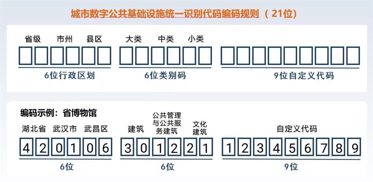 据介绍,《城市数字公共基础设施统一识别代码编码规则》确定了城市实体对象3段21位的编码规则,将城市实体对象划分为13个大类、87个中类和332个小类的分类框架。