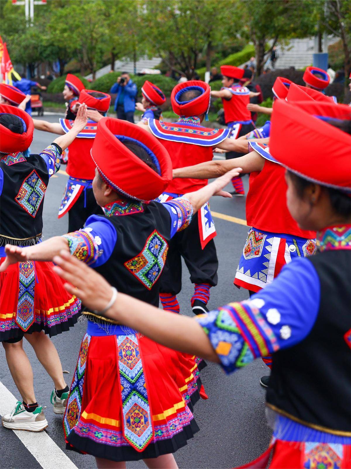 今年4月20日,在来凤县举行的“文化记忆非遗行”特色非遗巡游活动现场,摆手舞与普宁英歌舞、黄平苗族板凳舞、宣恩耍耍、咸丰竹马等非遗项目同台“斗舞”,精彩纷呈。