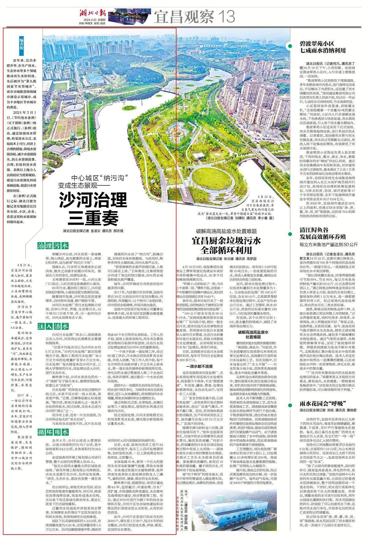 近年来,宜昌多措并举,在生产用水、生态补水等多个领域推动再生水的利用,先后被评为“第九批国家节水型城市”。该市全域推进海绵城市建设示范城市,成为丰水地区节水城市的典范。