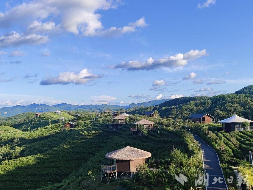 在保康县歇马镇百峰村香炉山茶园,15栋精致木屋错落有致地坐落其中,让前来的游客体验“住在风景里”的舒爽惬意。