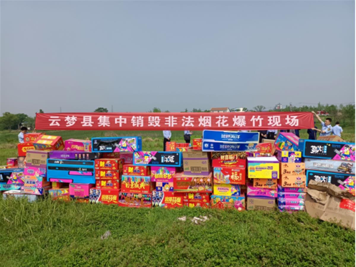 此次销毁的非法烟花爆竹共计烟花289箱,鞭炮31箱,是云梦县公安局等相关部门自2023年8月至今收缴的假冒伪劣及非法经营、储存、运输的非法烟花爆竹。