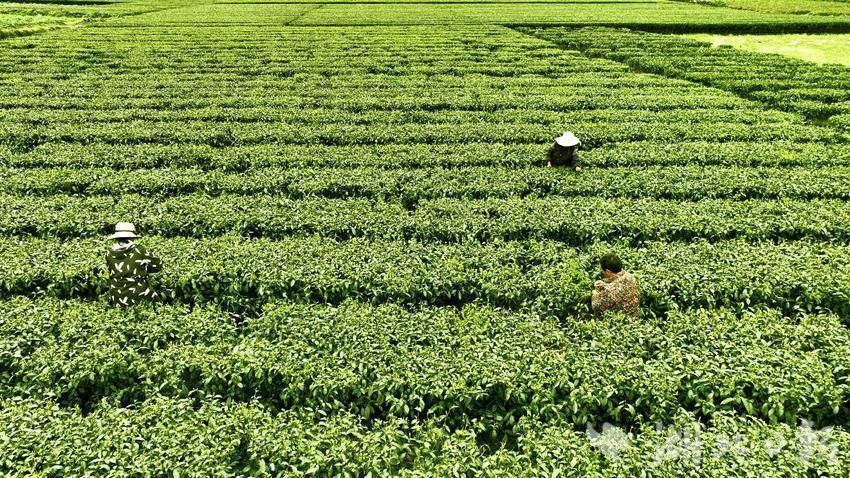 又是一年采茶季。随着气温回暖,李家河镇上洞坪村的茶树陆续吐露新芽,茶园层层叠漾起绿涛,片片新芽翠绿欲滴,村民们腰间挂着小竹篓穿梭茶丛中。