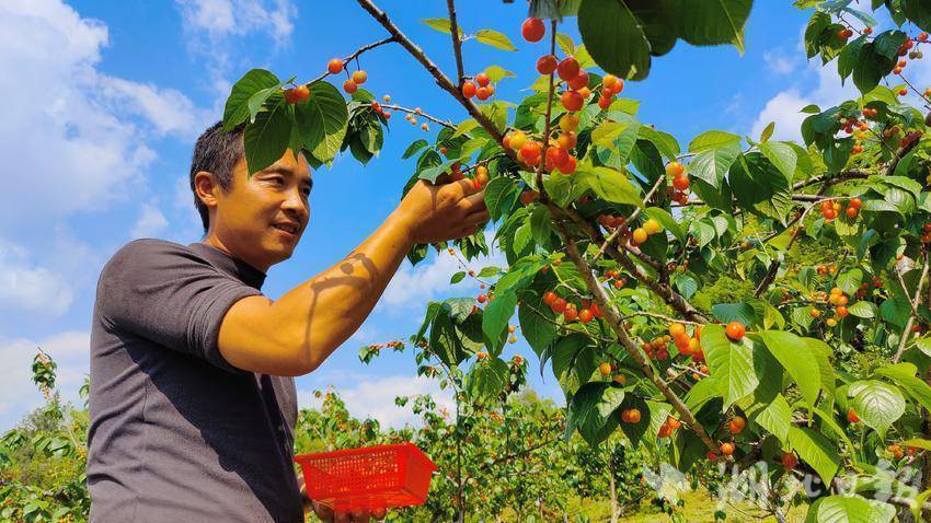 “一般每天都有四五百人前来,高峰期的时候,每天接待游客超2000人次。”基地负责人、恩施州人大代表蔡立勇介绍,2017年起,恩航农业公司流转土地300亩种植樱桃。游客在这里可以采摘美味可口的樱桃,还可以赏花、品农家饭,体验乡村游,村民也可以销售当地的农产品,在家门口吃上了“旅游饭”。