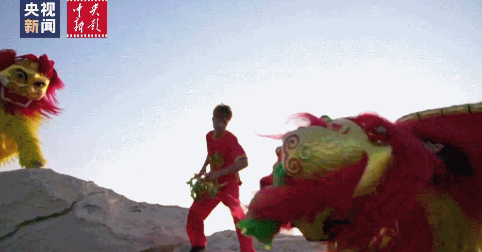 △新疆乌鲁木齐民间社火集中巡游活动的舞狮表演。图源:视觉中国