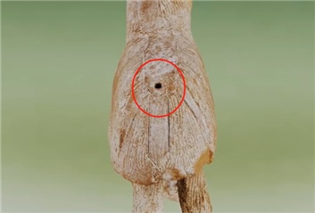 背部用刻刀勾勒出的饰带于两侧自然下垂