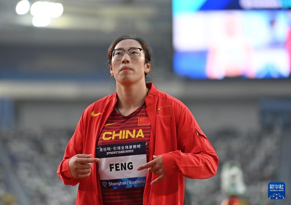 4月27日,中国选手冯彬在试投后,她以67米11的成绩获得亚军。新华社记者 宋彦桦 摄