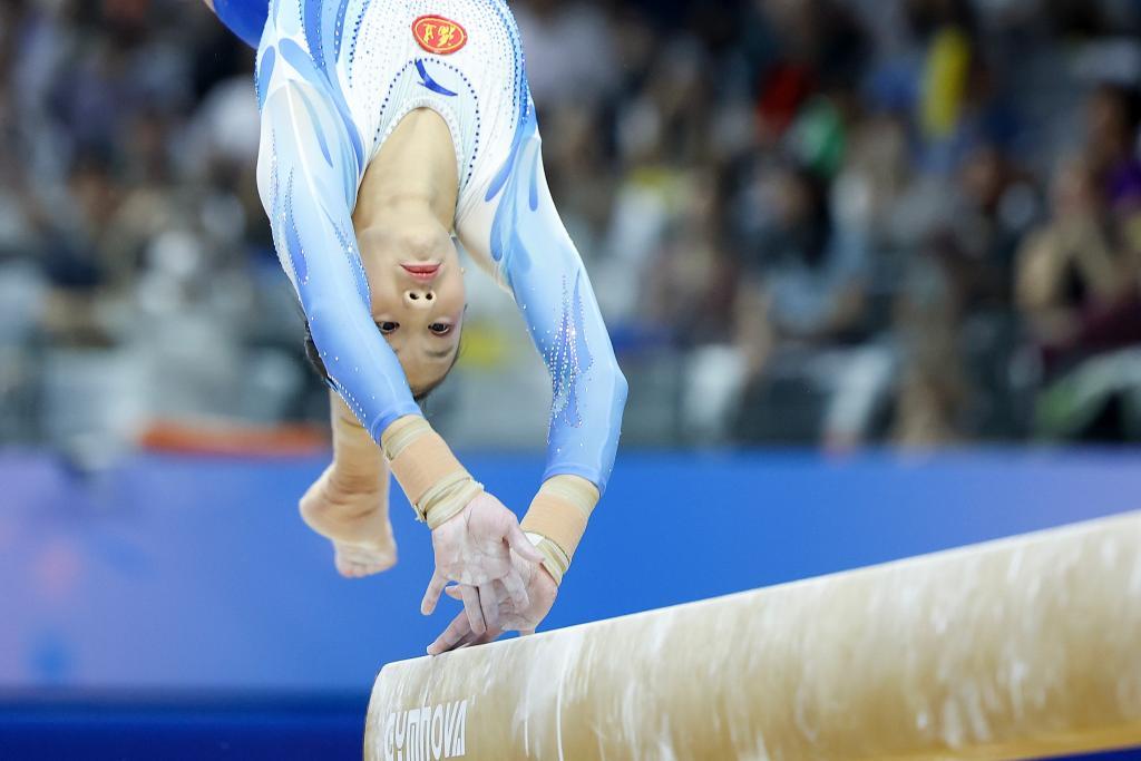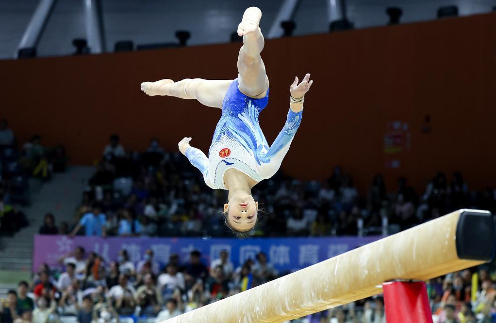 4月27日,福建队选手邱祺缘在平衡木比赛中。新华社记者 曹灿 摄