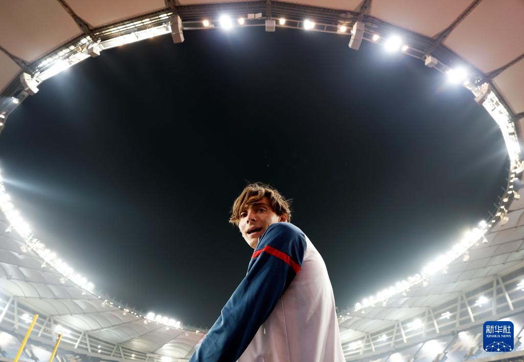 4月27日,瑞典选手杜普兰蒂斯在试跳6米25的高度间隙。新华社记者 王丽莉 摄