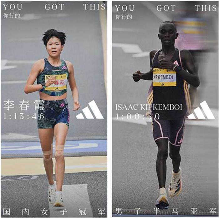 据悉本次比赛来自肯尼亚的选手Isaac KIPKEMBOI以1小时30秒的成绩获得亚军,中国选手李春霞和张草分别获得国内女子选手第一和第三名,田宝强和索朗才仁则分别获得国内男子选手第二和第三名。而男子组冠亚军和女子组冠军的获胜者正是身穿阿迪达斯的ADIZERO ADIOS PRO3跑鞋。