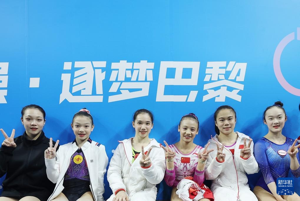 4月29日,上海队选手王盈、广东队选手柯沁沁、广东队选手欧钰珊、福建队选手邱祺缘、浙江队选手张清颖、湖南队选手周雅琴(从左至右)在比赛间隙合影。新华社记者 曹灿 摄