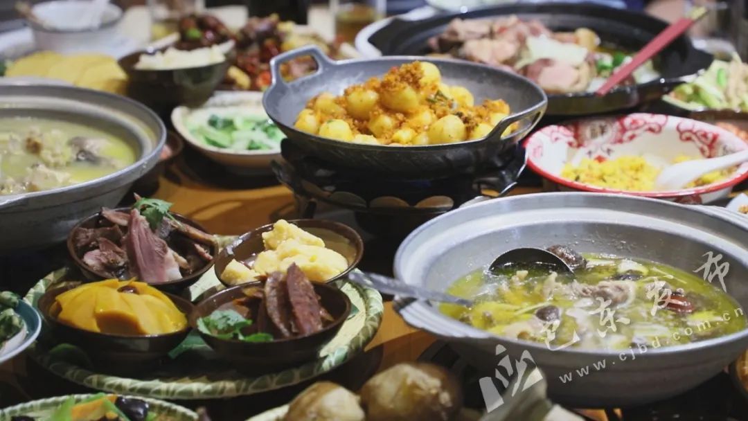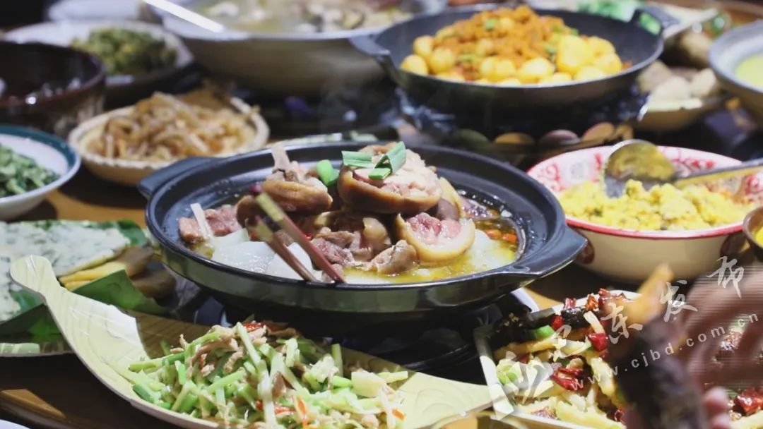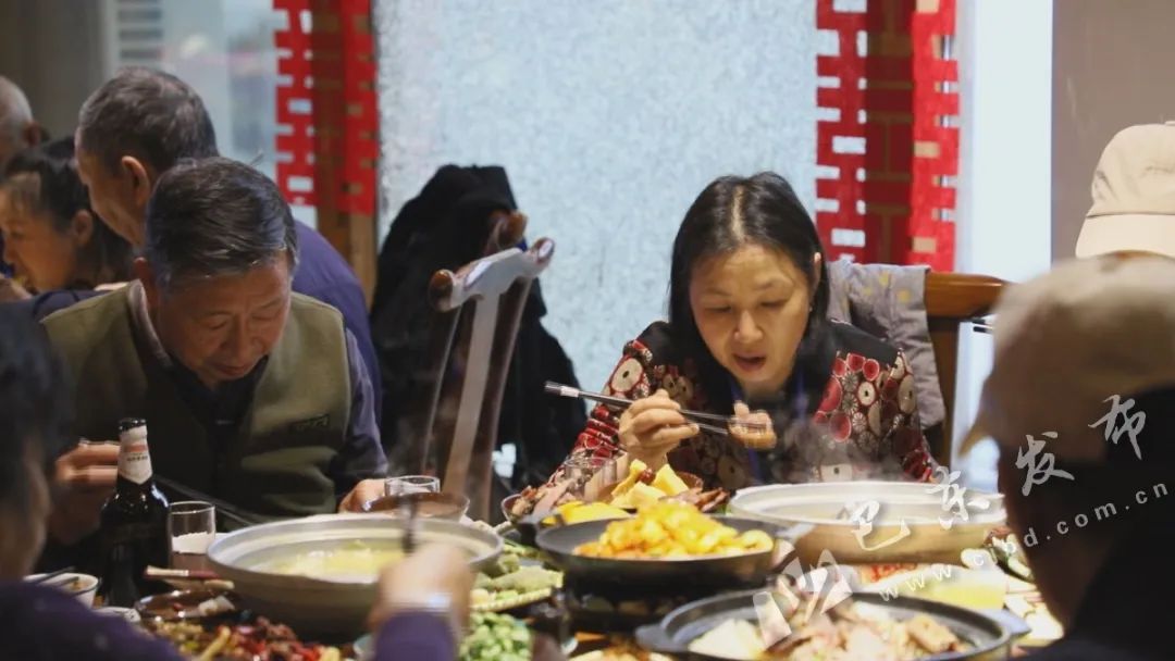 走进餐厅,具有土家特色的《峡江纤夫号子》萦绕耳畔,餐厅经理董兴春忙着招呼客人落座。大厅餐桌上已经摆满了土家特色菜肴,腊蹄子、炕土豆、土家合渣、豆豉炒腊肉、土家腊肠、土家苕粉……20多道菜散发着阵阵香味,赢得客人们惊叹:“好香啊好香啊!”