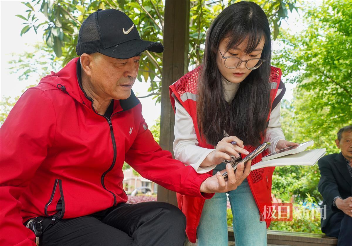 “我的家网络有点问题”“你帮我记一下号码……”凉亭里,居民们将曾苗团团围住,不停地询问问题。“这是大学生,她会玩手机,可以教我们玩手机,你们有需要快来。”居民肖女士向周边居民打趣道,大伙向曾苗咨询的话题越来越广,甚至偏离了原本的主题,曾苗笑盈盈地,用方言耐心地一个个地回复居民。