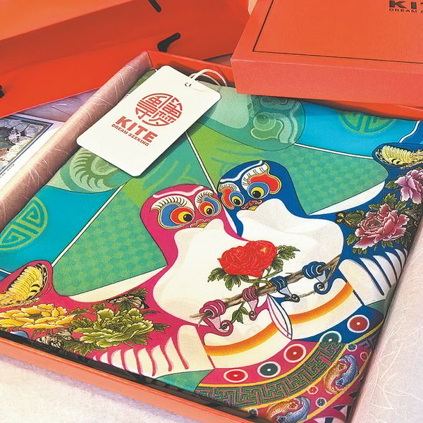 Scarves featuring kite patterns are one of the innovative efforts by Miao Bogang's team to promote traditional "Cao's kites" in Beijing. CHINA DAILY