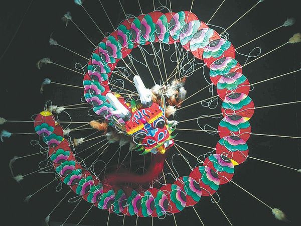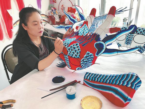 Dragon-headed centipede kites made by Yang Hongwei, a national-level representative inheritor of kite-making techniques in Weifang, Shandong province, which is renowned as the "world capital of kites". CHINA DAILY