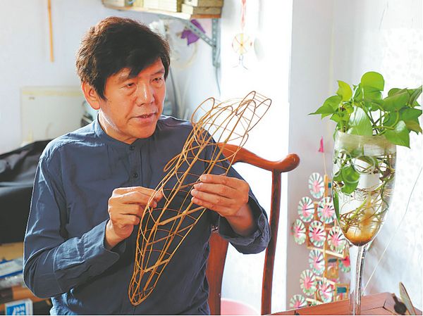 Wei Guoqiu, 63, works on the intricate bamboo frame of a kite. The artisan from Tianjin is known for his lifelike kites. CHINA DAILY