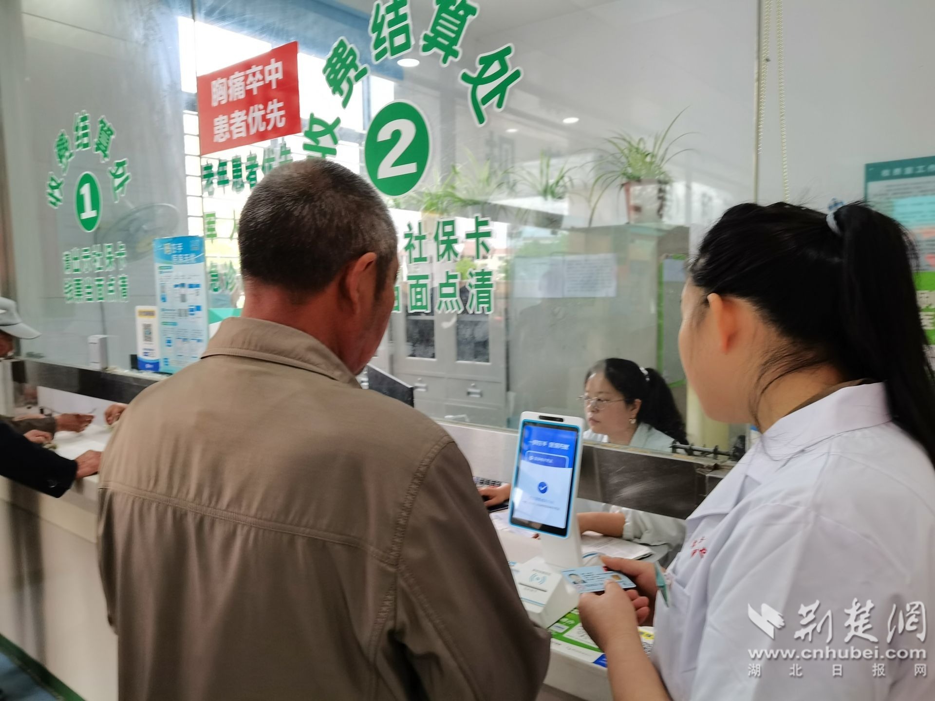 家住陡岗镇万安村的陈爹爹这天到孝感市中医医院陡岗分院就诊后,在收费窗口缴费结算时,却发现自己忘记带社保卡了,同行病人提醒他可以用智能手机代替社保卡刷电子凭证,老人说自己没有智能手机,当时急得团团转,收费室工作人员便引导他使用刚上线的刷脸设备快速办结报销。