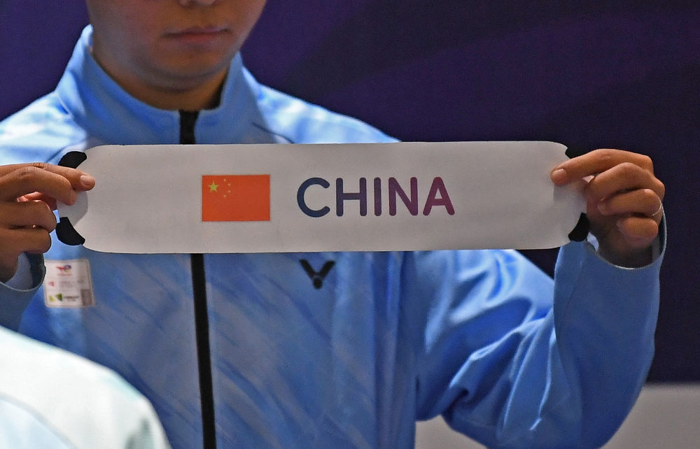 5月1日,工作人员在尤伯杯羽毛球团体赛淘汰赛抽签仪式上展示中国队的签条。新华社记者 侯昭康 摄