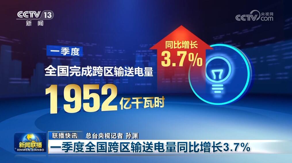一季度全国跨区输送电量同比增长3.7%
