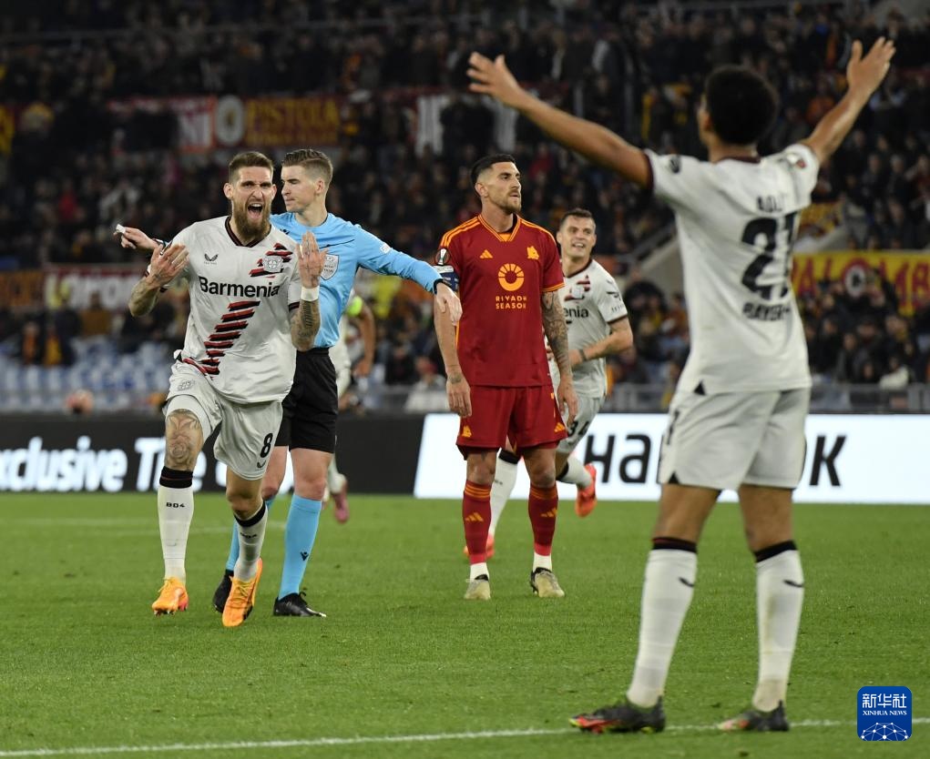 当日,在意大利罗马举行的2023-2024赛季欧罗巴联赛半决赛首回合比赛中,德甲勒沃库森队客场2比0战胜意甲罗马队。