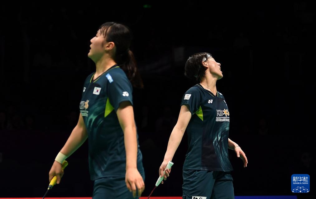 5月3日,韩国队组合白荷娜/李绍希(右)在女双比赛中因失分懊恼。她们2比0战胜中国台北队组合许雅晴/林琬清。新华社记者 侯昭康 摄