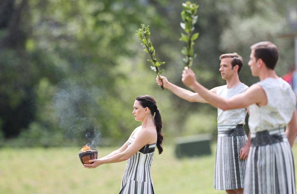 4月16日,2024年巴黎奥运会圣火火种采集仪式在希腊伯罗奔尼撒半岛的古奥林匹亚遗址举行。