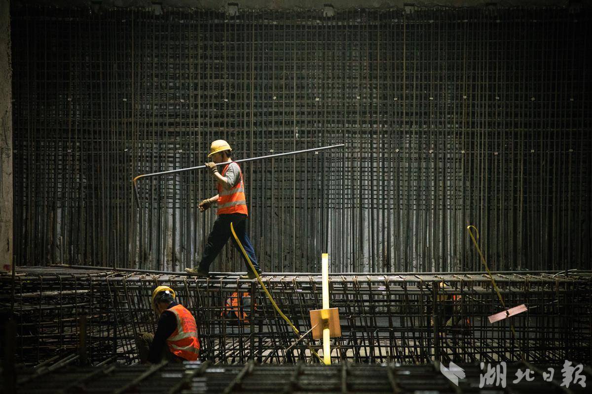 地铁12号线汉钢站是一座地下四层的超大型车站,长200米、宽50.7米,最深处距离地面32米,最近处距离汉江仅500米。走进施工现场,第三层基坑开挖施工正酣:60余名作业人员分工合作,有序切割、绑扎钢筋;挖掘机、装载车、吊车等18台机械设备集中作战,源源不断地将挖掘的泥土通过出土孔转运至地面。施工单位中铁四局汉钢站项目部负责人张舵介绍,项目部全力以赴抢抓“五一”施工生产黄金期,确保在节后完成“第三层基坑开挖支护”的节点目标。
