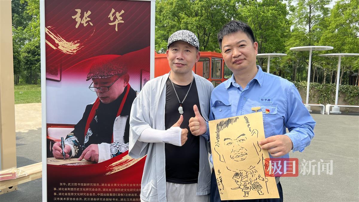 漫画家为劳模、工匠现场创作并合影(极目新闻记者 柳琛琛摄)