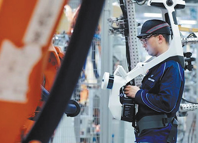 在华晨宝马沈阳生产基地,工作人员使用3D激光扫描技术,能对未来工厂生产设施进行高效规划。 宝马集团供图 |