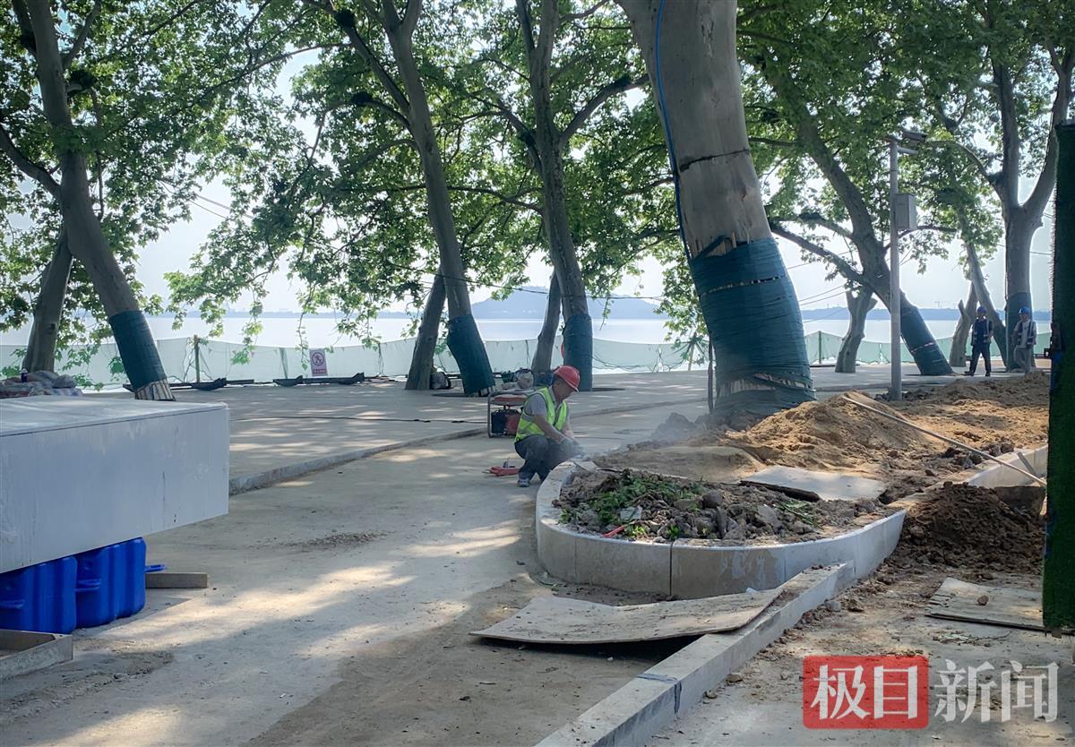 记者在现场看到,凌波门栈桥的桥墩和桥体已经搭建完成,临湖的亲水平台也进行了拓宽。这座栈桥紧邻武汉大学,因栈桥在武汉大学凌波门旁边,又有武林功夫“凌波微步”之称,这座栈桥一直吸引着众多市民和游客的目光。在栈桥上漫步,湖光山色尽收眼底,让人流连忘返。