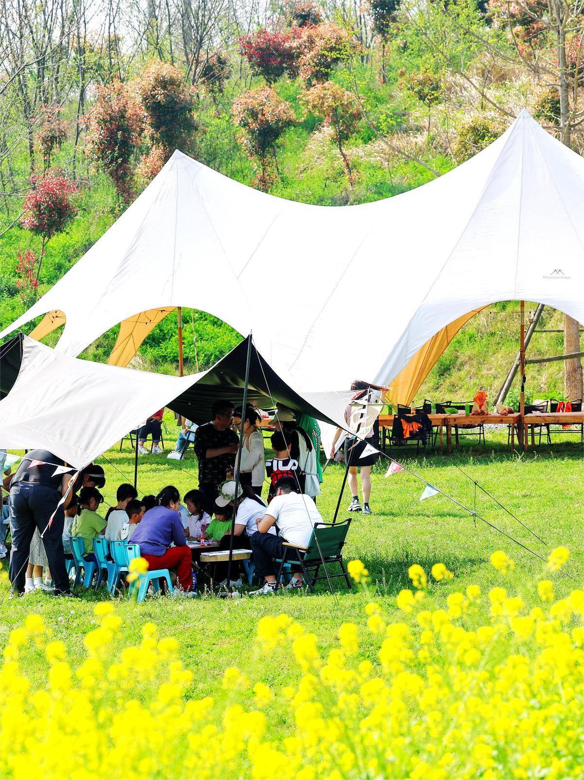 3月31日,游人在襄阳市襄城区卧龙镇迴龙河水库的小岛屿山营地游玩。近年来,襄城区相继推出“音乐+露营”“旅拍+露营”“集市+露营”等特色旅游服务,拓宽旅游空间,提升旅游体验的亲切感和融入感。(视界网 杨东 摄)
