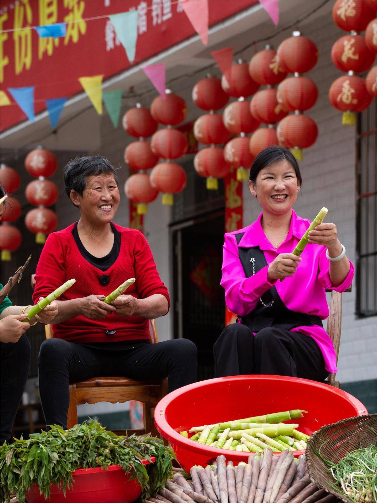 4月16日,谷城县赵湾乡渔坪村两河口农家乐老板和游客一起分拣竹笋、香椿、野韭菜等山野菜。随着气温不断回升,越来越多的城里人来踏青赏花,挖野菜,品尝“舌尖上的春天”,渔坪村23家农家乐生意火爆。(视界网 甘代柱 马明刚 摄)