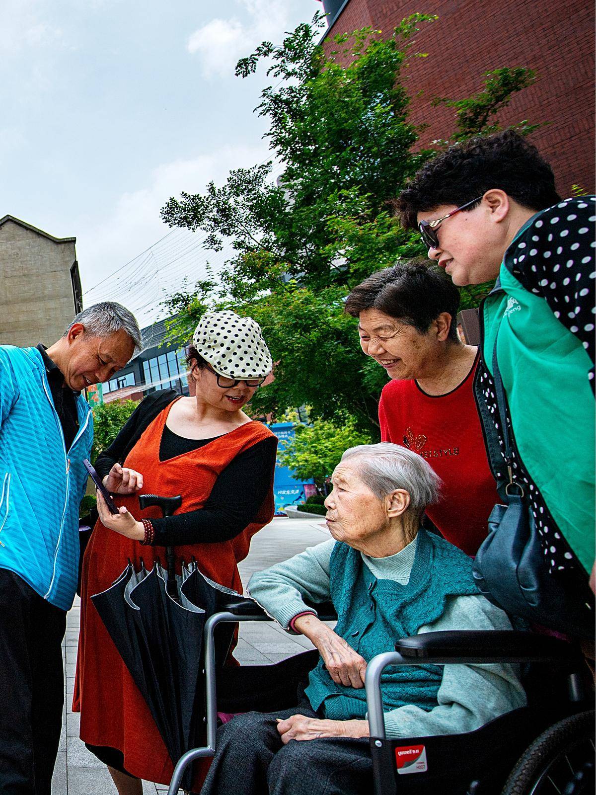 照护师朱春华用手机记录下老人和儿女在一起的温馨瞬间。“小朱像我的闺女一样贴心!”张奶奶对朱春华赞不绝口。