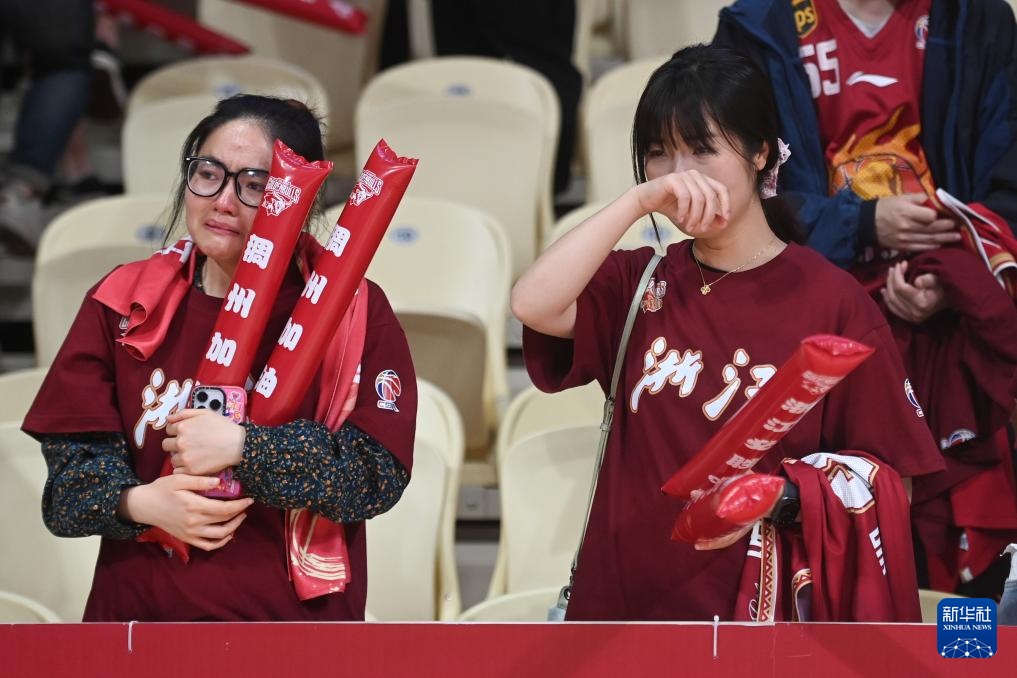 5月9日,浙江稠州金租队球迷在比赛后伤心落泪。新华社记者 黄宗治 摄