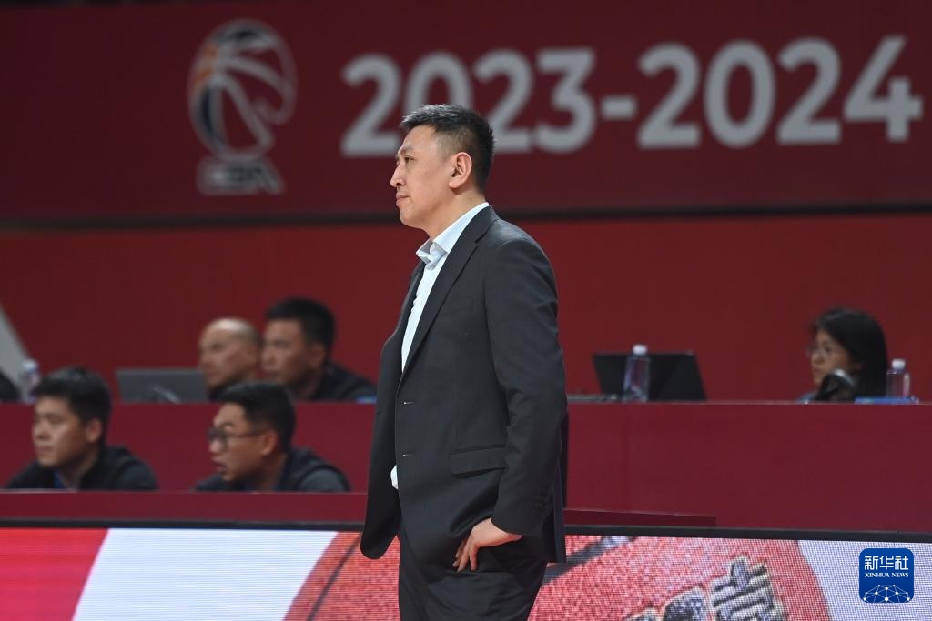 5月9日,浙江稠州金租队主教练王世龙在场边观赛。新华社记者 黄宗治 摄