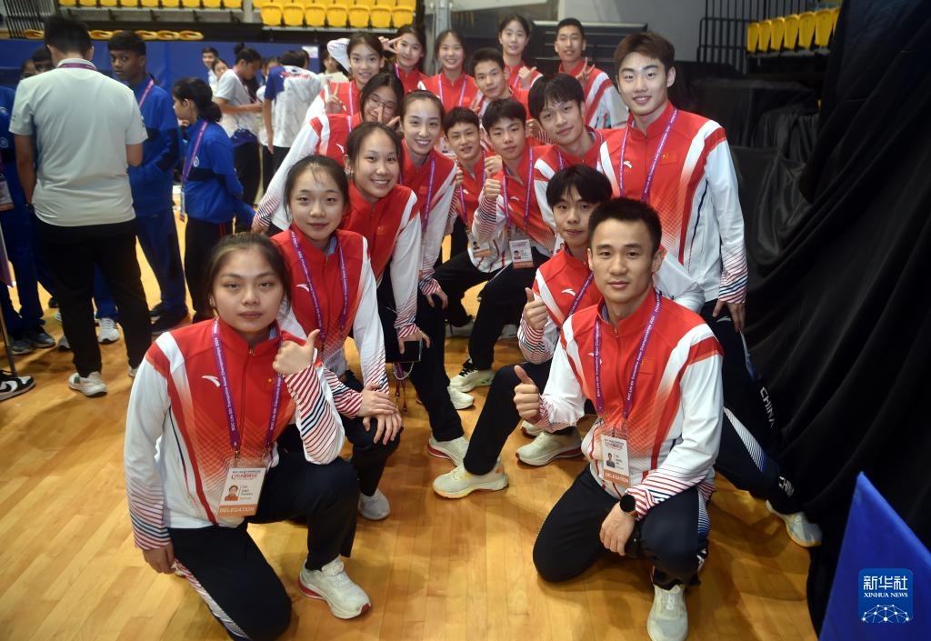 5月10日,参赛的中国队运动员在现场合影。新华社记者 卢炳辉 摄