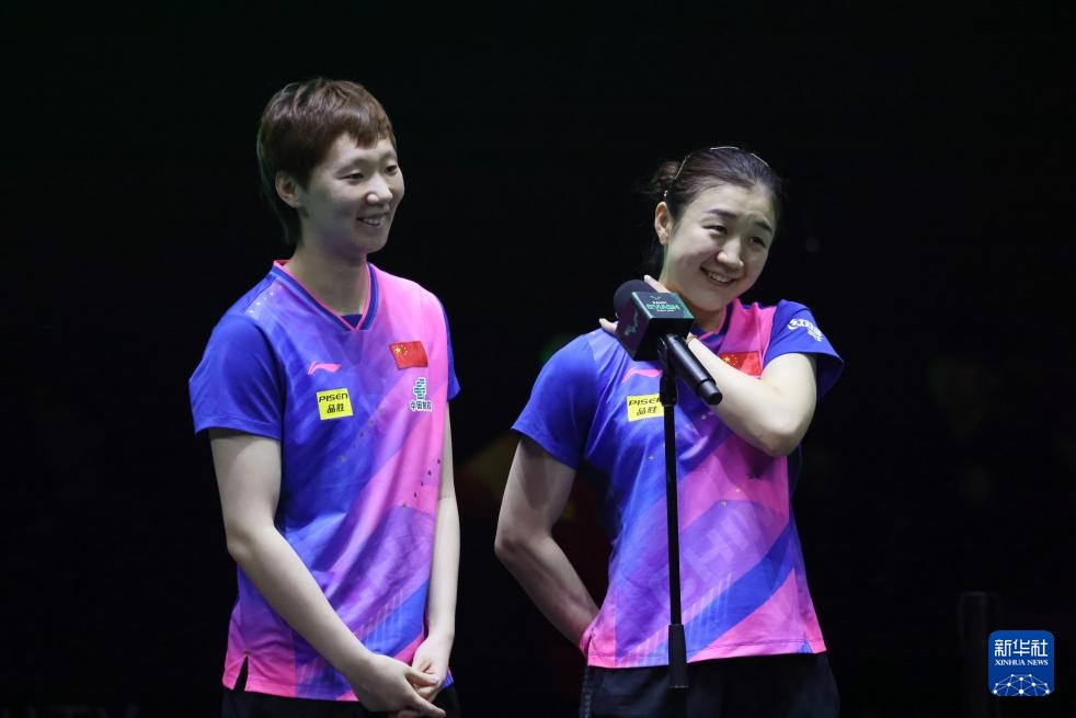 5月10日,陈梦(右)/王曼昱在颁奖仪式上。新华社记者 王海洲 摄
