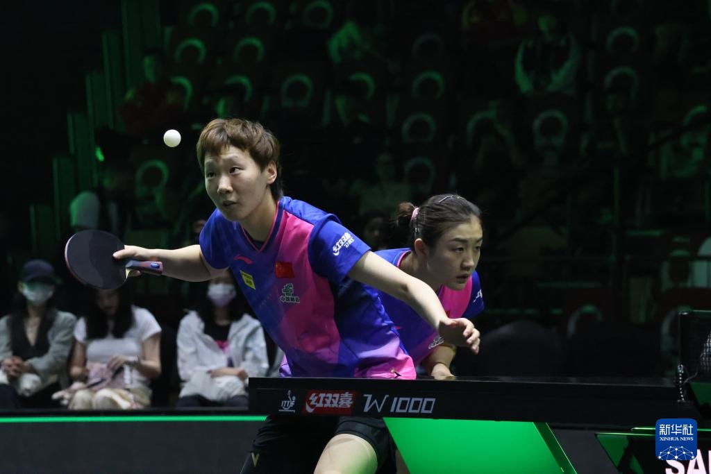 5月10日,陈梦/王曼昱(前)在比赛中。新华社记者 王海洲 摄