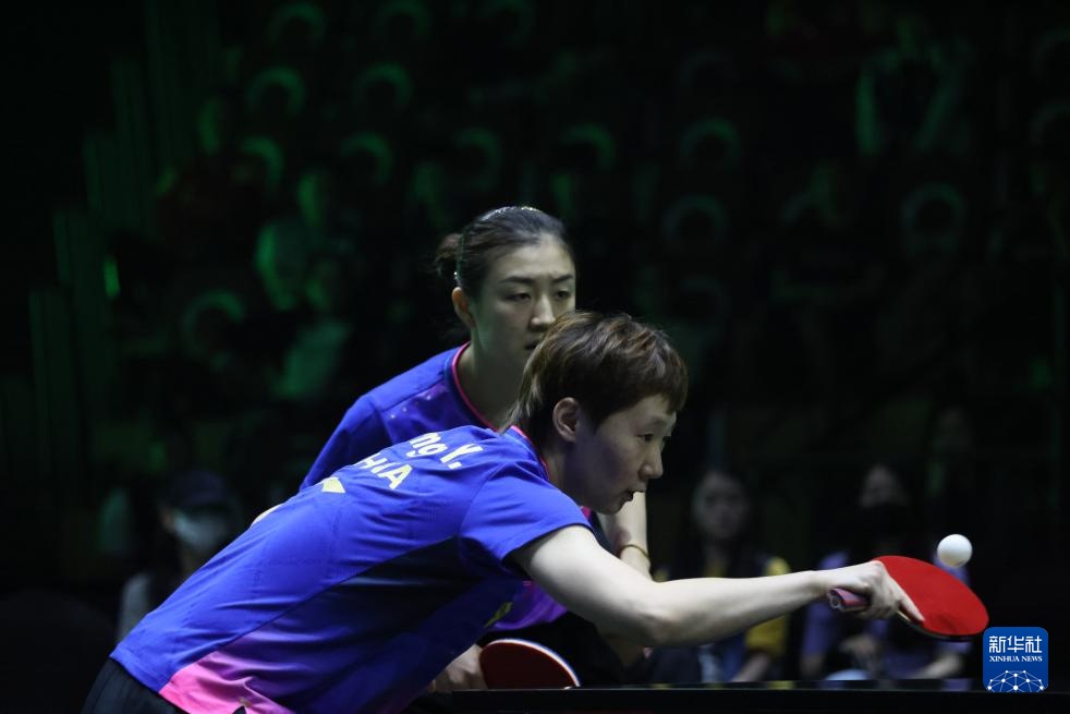 5月10日,陈梦(右)/王曼昱在比赛中。新华社记者 王海洲 摄